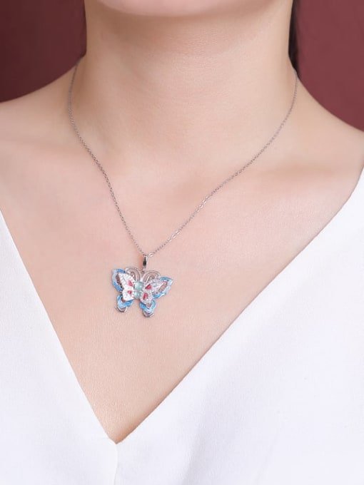 Sterling Silver Jade Enamel Trend Butterfly Pendant